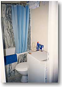 ligger en trappa upp, med hiss och porttelefon. Badrum